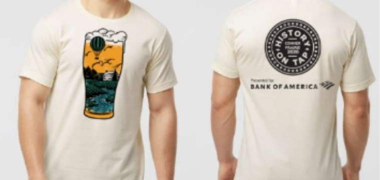 Our annual History on Tap shirt will be available for pre-order for a limited time when purchasing tickets (cut-off date is midnight May 1). This cream-colored tee is made from pre-shrunk, ring-spun USA cotton and meets OEKO-TEX standards and socially responsible manufacturing certifications.